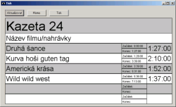 Vygeneruje seznam všech nahrávek na všech kazetách. Ten je možné vytisknout, nebo uložit do souboru.