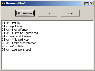 Vytiskne štítek na vybranou videokazetu. V případě, že se vám něco nebude zdát úplně v pořádku (například bude chybět něketrý film), stiskem aktualizovat by se vše mělo napravit.